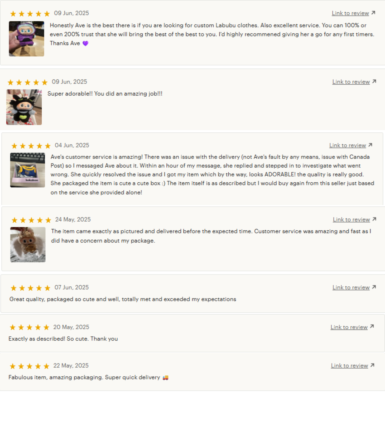 We started out on Etsy, where we quickly became one of the top shops for custom Labubu outfits💖